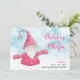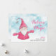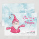 Believe in Magic Pink Gnome Snowy Blue Christmas Holiday Card