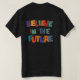 This inspiring t-shirt design features the phrase "Believe in the Future" in bold, multicolored letters against a dynamic, abstract background. The design conveys a message of hope, optimism, and the power of belief. It encourages wearers to embrace a positive outlook, envision a brighter future, and take steps to create a better world.