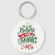 A keychain with a cool illustration. Text says Believe in the Magic in fancy lettering. Decorated with christmas balls.