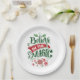 Paper plates with a cute illustration. Text says Believe in the Magic in fancy lettering. Decorated with christmas balls.