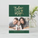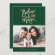 Share the magic of Christmas by sending your loved ones a modern holiday photo card. This stylish holiday card features faux gold foil text that says "Believe In the Magic", green background with light green dots, and placeholder for your custom photo and text.