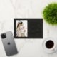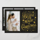 Capture the wonder of the season with this incredibly striking, luxury holiday card featuring a dramatic black background. The heartfelt message, "Believe in the Magic of Christmas," is rendered in beautiful, ornate script and surrounded by sparkling stars, all shining brightly in premium gold foil. Your family photo is elegantly framed next to the text, making this eye-catching design a truly sophisticated and magical way to send your greetings.