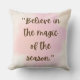 Featuring the inspiring quote “Believe in the Magic of the Season,” this decorative cushion brings cozy charm and seasonal spirit to any room. Perfect for your sofa, bed, or as a heartfelt holiday gift, it’s designed to spread joy and comfort all season long.