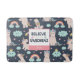 Add a magical touch to the bathroom of your little girl with this adorable custom blue and pink unicorn pattern bath mat. Bath mat has rainbows, clouds, birds, and unicorns. Text says Believe in Unicorns and there's a place for the first name of your little kid.