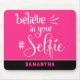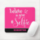 Believe in your Selfie name Quote Black white Pink Mouse Pad