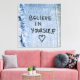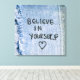 This is adorable faded blue denim look with black writing. Just like when you where in school back in the 90's. It reads BELIEVE IN Yourself with a cute little heart. This is cute, motivational and inspirational. This is lovely.