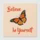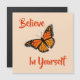 Lift people's spirits with this inspirational positive affirmation magnetic card. Great as a gift or a personal self-esteem affirmation! This design includes a bright orange and black monarch butterfly and the text "Believe In Yourself".