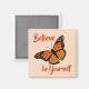 Lift people's spirits with this inspirational positive affirmation refrigerator magnet. Great as a gift or a personal self-esteem affirmation! This design includes a bright orange and black monarch butterfly and the text "Believe In Yourself".