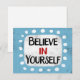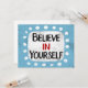 "Believe In Yourself" is a cute inspirational or motivational quote with a white accent shape surrounded by white textured whimsical dots.