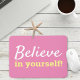 Believe in Yourself Inspirational Quote Pink Mouse Pad
