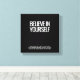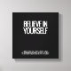 Refresh your décor with this stretched canvas print showcasing the powerful message "Believe In Yourself." Featuring bold white typography on a deep black background, this artwork offers both style and motivation for bedrooms, living rooms, or offices. Below the main phrase, a thoughtful quote reminds viewers of self-trust: "A bird sitting on a tree is never afraid of the branch breaking, because its trust is not in the branch but in its own wings." This canvas is designed to inspire confidence and resilience every day.