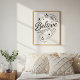 Manifest magic every time you look at your walls! This stunning 20" × 25" glossy poster features the elegant script word "Believe" surrounded by swirling cosmic waves and twinkling hand-drawn stars. The perfect blend of boho charm and celestial energy – an instant mood-lifter for bedrooms, dorms, meditation spaces, or vision board areas.