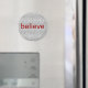 Pale grey background with black script: "believe all is possible love is everything all is possible if you believe" and the word "believe" in dark red. This would be a great item to have in plain sight everyday, either on you file cabinet, fridge or magnet wall or board. It would also be a nice gift to give someone, or a group. Great stocking stuffer or token gift.