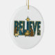 Beautiful nativity scene ornament with the word "Believe" containing the manger, Jesus, Mary, Joseph, a shepherd, sheep and a donkey. On the back is the scripture from John 3.16. Would make a thoughtful Christmas gift for Christian family and friends.