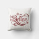 Trendy Believe Red Snowflakes Stars Christmas Holiday throw pillow or accent pillow.
