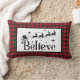 Believe - Santa Reindeer - Black Red Buffalo Plaid Lumbar Cushion