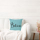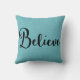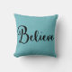 "Believe" Text in Black on Blue Pillow