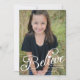 A modern design of lovely typography that reads "Believe - in the magic of the season" and features a full size photo of your happy family. Place on the back for you to add your personal holiday message or more photos if you wish. A beautiful, contemporary greeting for any holiday greeting.