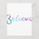 The word 'believe' written with cursive fonts. All digital image with watercolor effect applied to design.