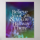 Motivational Quote : Believe you can and you're halfway there ~ Theodore Roosevelt. This inspirational quote canvas and poster is great as a self-motivator, or as a gift for friends and family, so that they're inspired everyday as they look as the quote. It's also great as a motivational tool to inspire your team at the work place to strive towards excellence. The quote appears in crisp, bright text over an elegant abstract watercolor of a butterfly on a flower over a multi-coloured gradient.