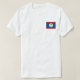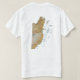 The front of this t-shirt bears a small Belizean flag with its familiar circular motif over blue and red, while the back displays a relief map of Belise. Available on t-shirts, sweatshirts, polos, long-sleeves and more.