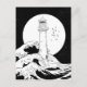 A black and white line art illustration of Bell Rock lighthouse in Scotland. Huge waves crashing around the base of the lighthouse.