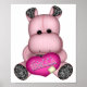 This adorable hippo is holding a pink heart that says "Bella" in it.