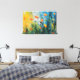 This expressive abstract artwork captures the feeling of a wildflower meadow alive with movement, light, and colour. Painterly strokes of deep blue, teal, and fresh green sweep across the canvas, while vibrant touches of warm yellow and soft orange suggest bellflowers dancing gently in a summer breeze. Thick textures and energetic brushwork give the piece a tactile, almost immersive quality, as if the viewer is standing within the meadow itself.