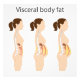 Visceral fat and subcutaneous fat accumulate around organs. Medicine and health diagram about belly fat