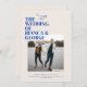 The Belmont design card showcases the couple's names in a large bold font, creating a visual centerpiece that speaks volumes. As you glance above and below, the essential details of the celebration are gracefully presented in a small, classic serif font. The back side is a canvas for another beautiful photo of the couple, allowing a glimpse into their shared journey. A personalised message, thoughtfully crafted by the couple, adds a warm and intimate touch, inviting loved ones to join in the celebration of their union.