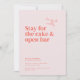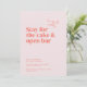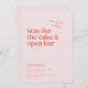 The Belmont design card showcases large typography that says "Come for the wedding. Stay for the cake and open bar." As you glance below, the essential details of the celebration are gracefully presented in a small, classic serif font. The back side is a canvas for another beautiful photo of the couple, allowing a glimpse into their shared journey. A personalised message, thoughtfully crafted by the couple, adds a warm and intimate touch, inviting loved ones to join in the celebration of their union.