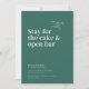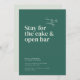 The Belmont design card showcases large typography that says "Come for the wedding. Stay for the cake and open bar." As you glance below, the essential details of the celebration are gracefully presented in a small, classic serif font. The back side is a canvas for another beautiful photo of the couple, allowing a glimpse into their shared journey. A personalised message, thoughtfully crafted by the couple, adds a warm and intimate touch, inviting loved ones to join in the celebration of their union.