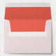 Expectations met; I liked that I had the opportunity to include our address on the back of the envelope. This color matched very well with my save the date. The color was the same as shown above. I had our address labeled on the back of the envelope and the font/printing met my expectations.