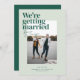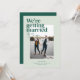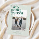 The Belmont save-the-date card showcases a vertical photo that captures the essence of the couple's love, creating a visual centerpiece that speaks volumes. In the top left corner, the bold declaration "We're getting married" steals the spotlight. Directly beneath, the couple's names are delicately written in a handwritten calligraphy style, infusing a touch of personal charm and sophistication.