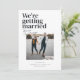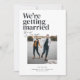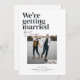 The Belmont save-the-date card showcases a vertical photo that captures the essence of the couple's love, creating a visual centerpiece that speaks volumes. In the top left corner, the bold declaration "We're getting married" steals the spotlight. Directly beneath, the couple's names are delicately written in a handwritten calligraphy style, infusing a touch of personal charm and sophistication.