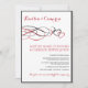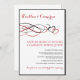 This beautiful wedding invitation features a unique black and red hearts and swirls design.