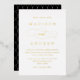 Simple, classic wedding invitation featuring your names and wedding details displayed in gold foil lettering with calligraphy script accents. The back of the gold foil wedding invitation features a black and white trellis design. The design coordinates with our Beloved wedding collection.