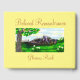 It has "Mountain Peaceful Pastures" watercolor painting. This design has moderate contrast with mostly medium tones. It has rich greens and blue colours. There is a variation of shades and red tones to offset. It has "Beloved Remembrance" written on it.