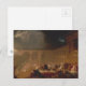 This is a reproduction of “Belshazzar’s Feast”of 1821 by John Martin. He was thirty-two years old when he created this work. The scene shows the Biblical epdisode described in the book of Daniel. the Babylonian king had defiled the sacred vessels of the Jerusalem Temple and a mysterious hand appeared that wrote out the doom of the king and the kingdom. The exhibition of the painting t the British Institution made Martin’s reputation and was a popular sensation. The Artist was born in Northumberland and became a student of Bonifacio Musso. They moved to London when Martin was seventeen and he married two years later. He supported himself giving drawing lessons and selling watercolors and, on his second attempt, had an oil on canvas hung in the Royal Academy when he twenty-two. Five years later he won public acclaim for his Joshua and two years later a large sale enabled him to buy a home and rid himself of debt. He went on to win wider public acclaim and to become a favourite of aristocrats and royalty. He died a wealthy man in 1874. This painting is an oil on canvas and measures 63 by 98 inches. It is in a private collection.