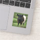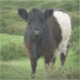 A Belted Galloway Cow, also known as the Oreo cow belties or Panda Cow, looks straight into the camera. Grazing here at Dartmoor National Park.