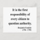"It is the first responsibility of every citizen to question authority." - Benjamin Franklin