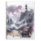 Bench in front of lighthouse - art from the illustrated editions of The Adventures of Quaraun The Insane, The Pink Necromancer short stories. Art by Wendy Christine Allen.