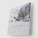 Wall clock featuring a bench sitting up on top of a snow covered hill on a cold winter day with a line of foot prints. I took this near Lake Springfield in Springfield Missouri, United States. Looking for more prints or products? Feel free to visit my store: http://www.zazzle.com/timelessmomentsphtgy