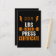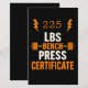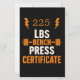 Celebrate your lifting gains with this hilarious Bench Press Certificate design! Perfect for gym lovers, fitness fans, or as a funny gift for workout buddies. Bold LBS typography and barbell graphics make it a standout decor for any weight room or home gym.