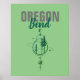 Modern word art poster features Oregon in distressed grey font with Bend in a modern aqua script font with geometric trees and planets logo style graphic on green background
