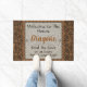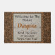 A humorously funny welcome mat in orange rust and brown tones to place by your entry doors. Great colours for fall and Autumn! Welcome to the house (Add Your Name), Bend the Knee or at least wipe your feet. A door rug fit for royalty, Bend the Knee Door Mat