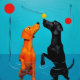 "Beneath the Blue Horizon" - Surreal Colourful Dogs. With abstract swirls and inquisitive gazes, this surreal artwork transforms two dogs into symbols of playful companionship. With bright blue hues and playful patterns this piece offers a unique and imaginative perspective on friendship and fun. Labrador and Vizsla dogs.