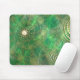 Fractals combined to create green light patterns on the sea floor, overlaid with ornate gold spirals and a single pearl. The fractals were created in Apophysis and Xaos.