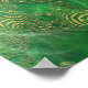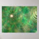 Fractals combined to create green light patterns on the sea floor, overlaid with ornate gold spirals and a single pearl. The fractals were created in Apophysis and Xaos.
