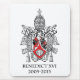 Pope Benedict XVI made history with his election in spring 2005, and has made an equally memorable exit with the announcement of his abdication of the throne of St. Peter in February 2013. A man of great faith and deep culture with the heart of a teacher, his eight years in the Vatican saw him cast the seeds of Christ's message on rocky and fertile ground alike. Remember this great man and his humble exit through displaying his coat of arms, showing the emblems of his Bavarian home in the archdiocese of Munich and the scallop-shell of baptism and pilgrimage. Original art by Matthew Alderman. http://www.matthewalderman.com